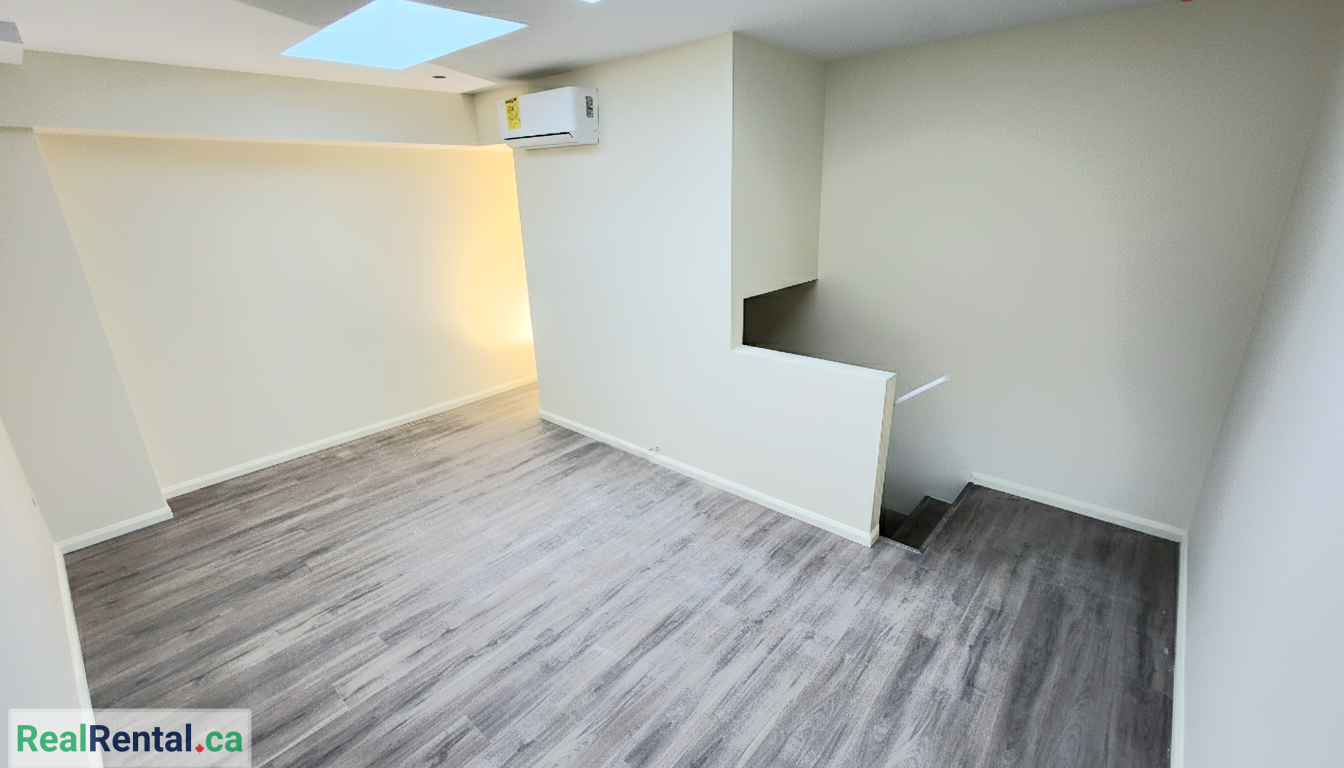 This unit features a rare layout: spread across two full floors, the apartment provides clear separation between living, dining, and sleeping areas. The main highlight is a large overhead skylight in the bedroom, which fills the interior with soft, natural light, creating a warm and open atmosphere even without traditional windows.